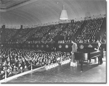 Marian Anderson’s concert became an important part of the Civil Rights Movement, and soon afterwards, DAR joined the movement and changed its policy. Anderson was welcomed by the DAR to perform at Constitution Hall not long after the Lincoln Memorial Easter Concert. Anderson also selected Constitution Hall for the site to kick-off her farewell tour. In later years, her family would return to Constitution Hall to unveil a U.S. Postage stamp in her honor.